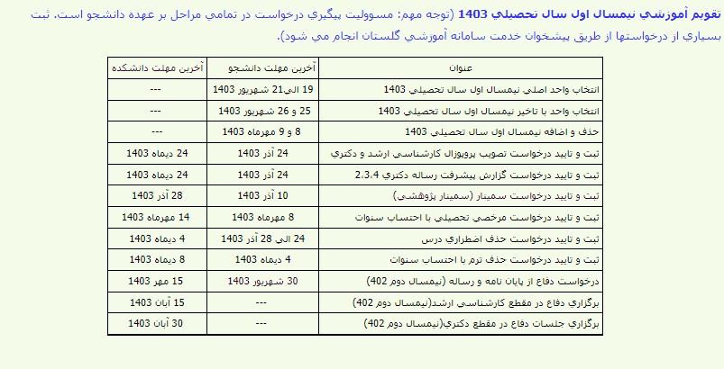برنامه زمانبندی جلسات کمیسیون موارد خاص دانشگاه