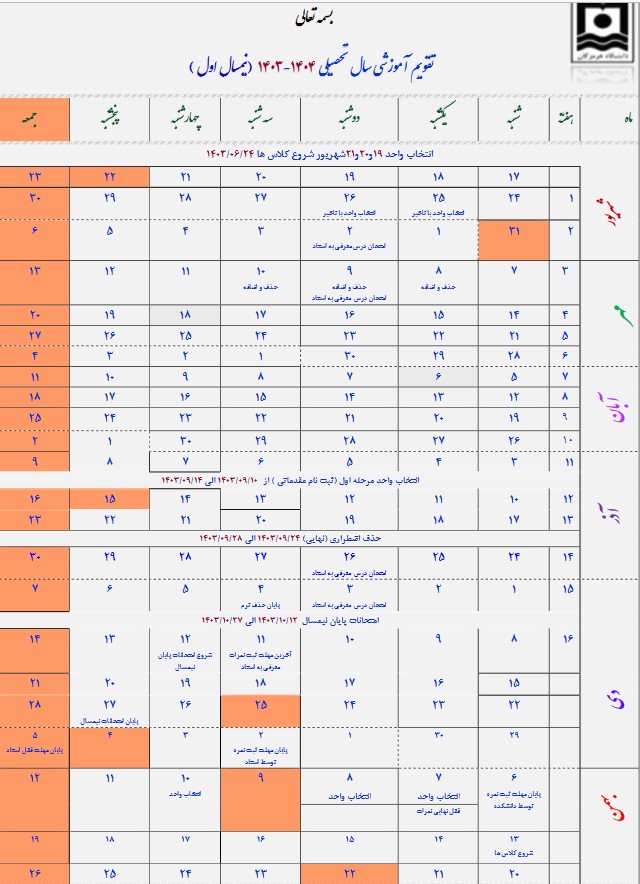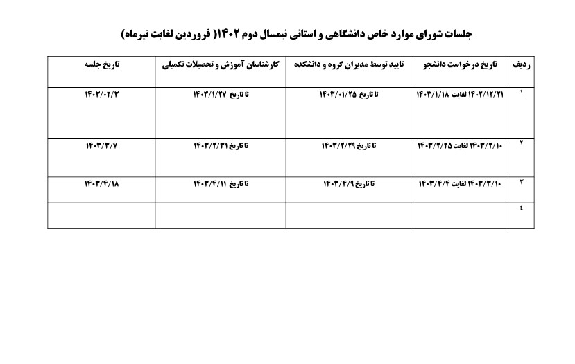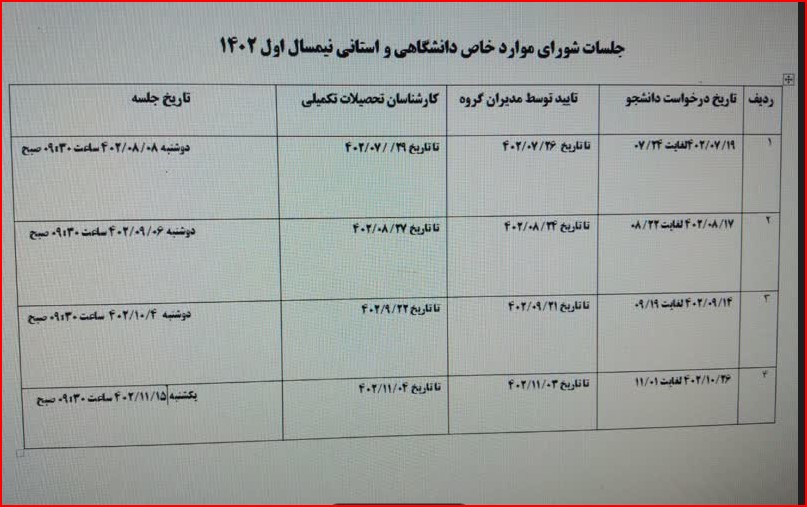 برنامه زمانبدی جلسات کمیسیون موارد خاص دانشگاه