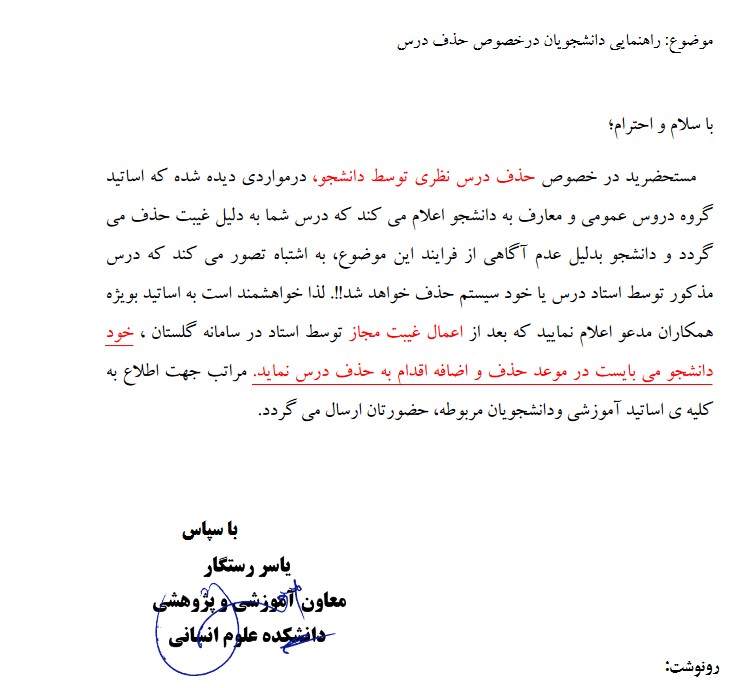 حذف دروس عمومی و غیبت بیش از حد مجاز