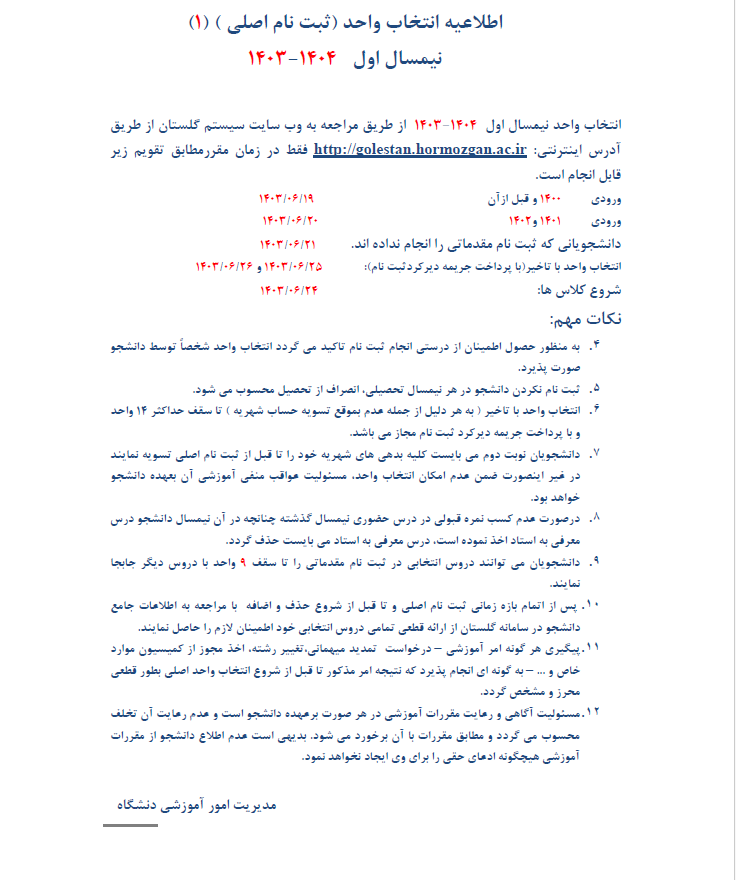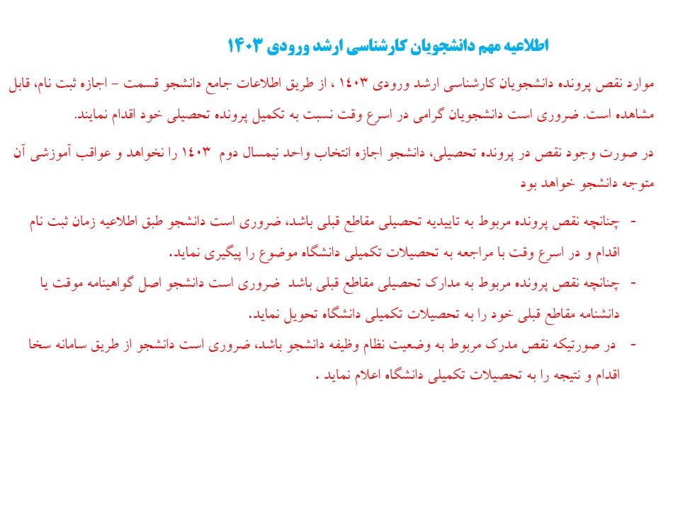 رفع نواقص ثبت نام دانشجویان کارشناسی ارشد