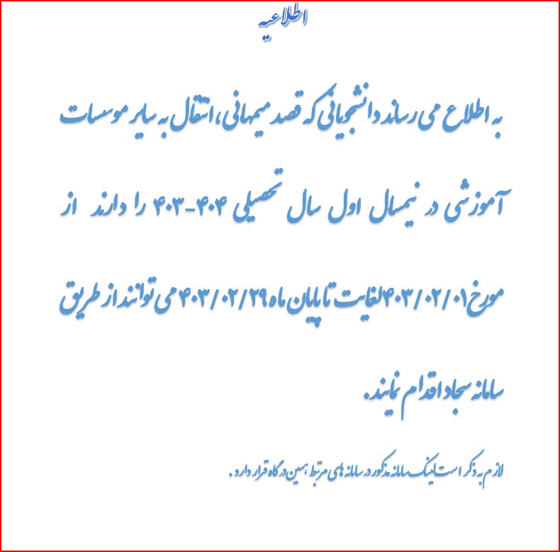 اطلاعیه در خواست انتقالی یا میهمانی به سایر موسسات آموزشی کشور