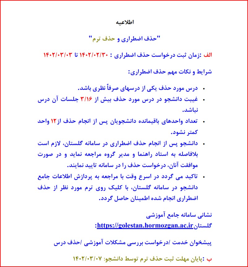 اطلاعیه حذف ترم و اضطراری نیمسال 4012