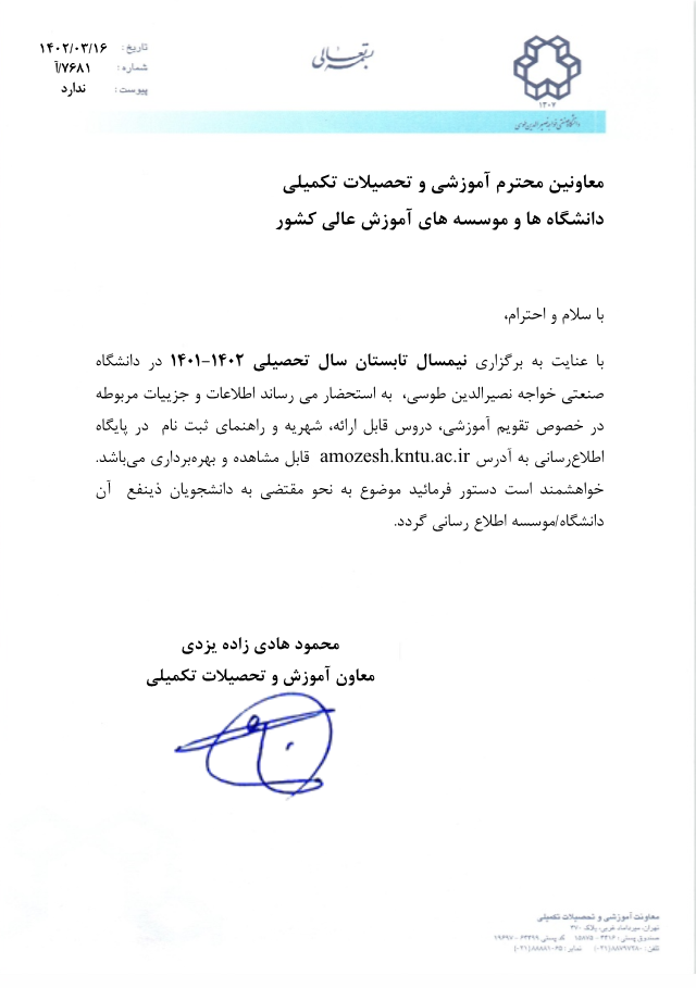 فراخوان نیمسال تابستان دانشگاه خواجه نصیر
