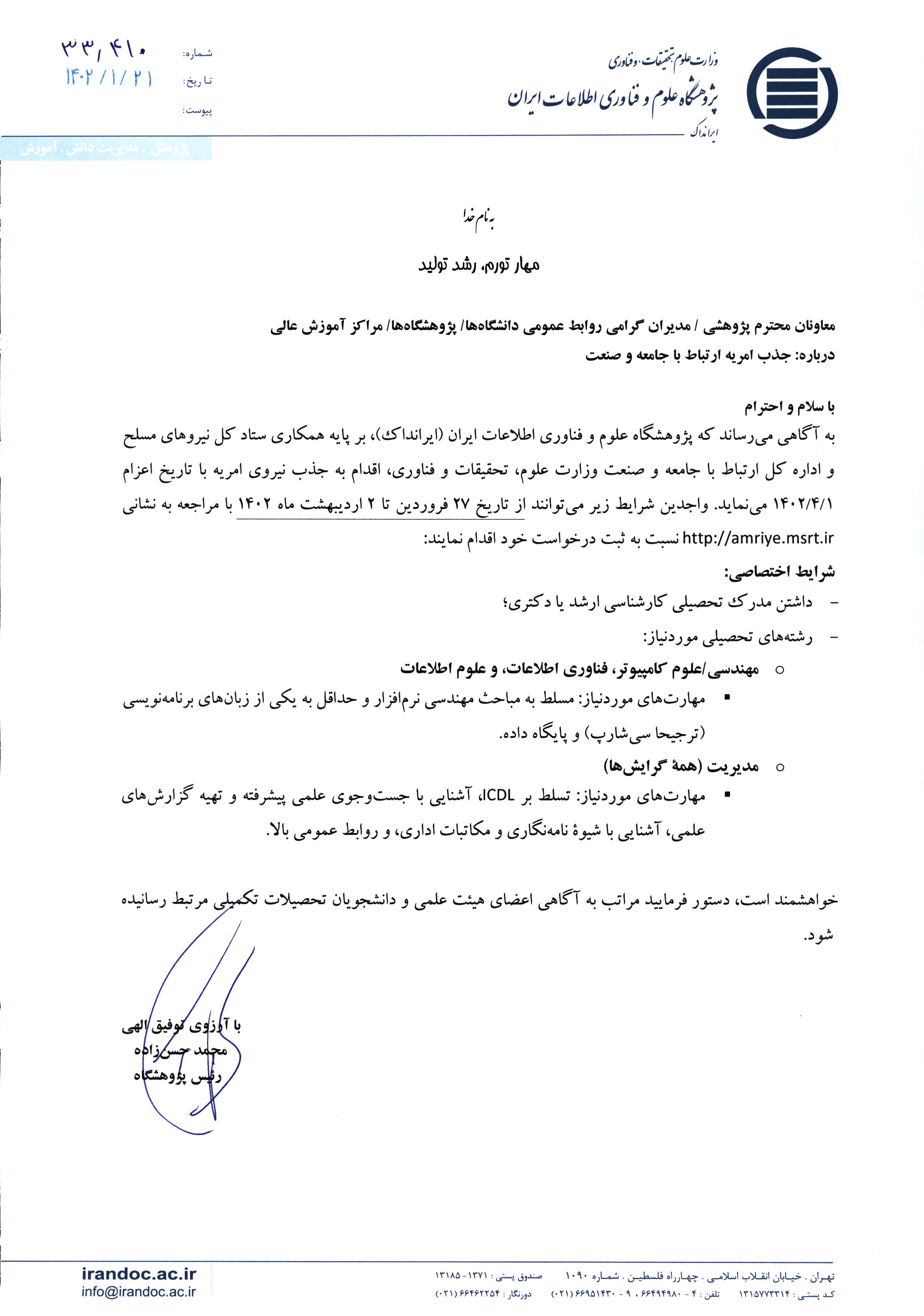 فراخوان جذب استعداد های درخشان دانشگاه شهید مدنی