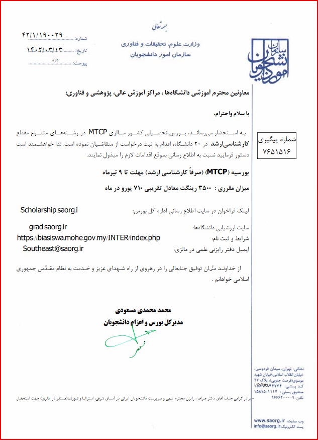 اعطایی بورس خارج از کشور مقطع کارشناسی ارشد