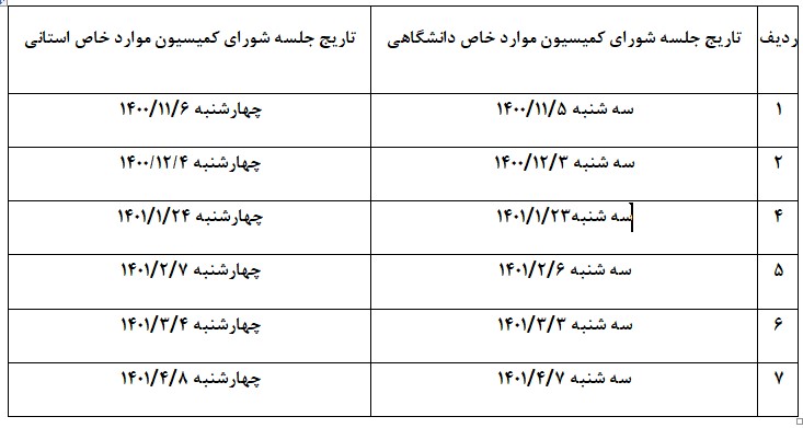 تاریخ برگزاری کمیسیون موارد خاص