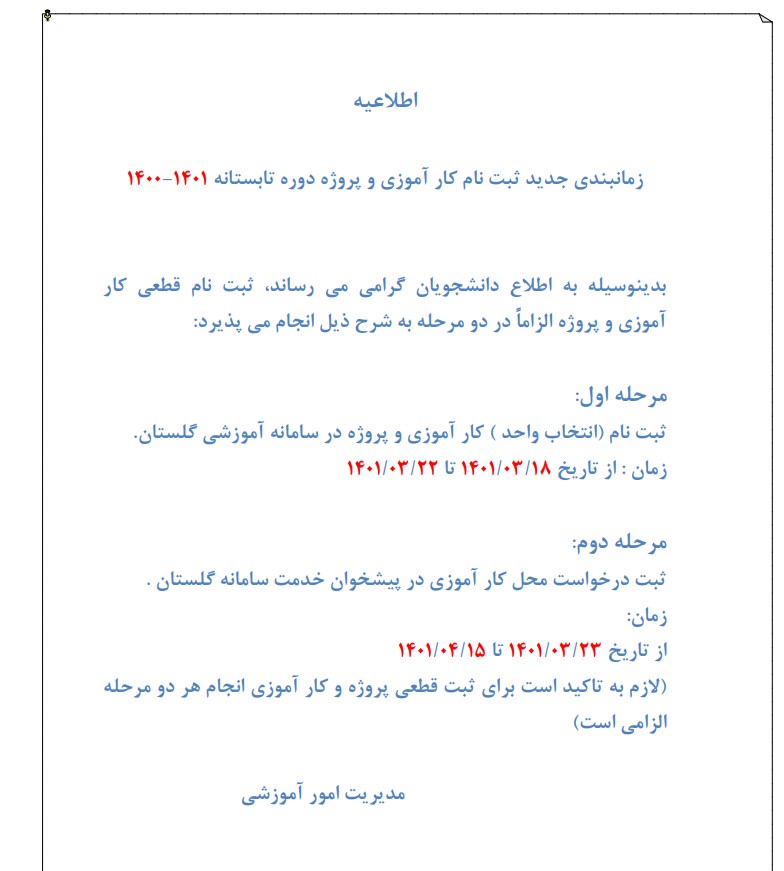 ثبت نام پروژه و کارآموزی تابستان1401-1400