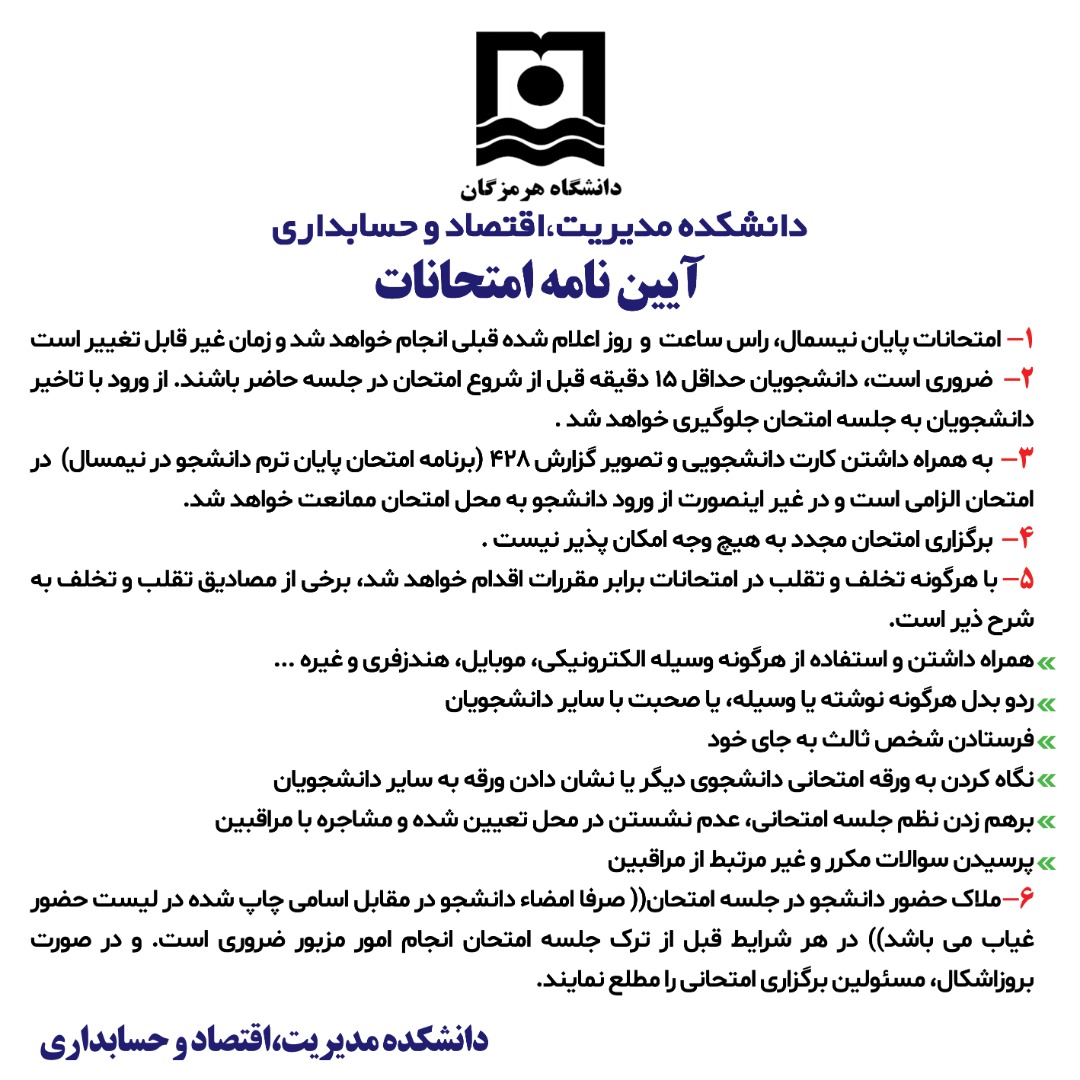 آیین نامه امتحانات پایان نیسمال