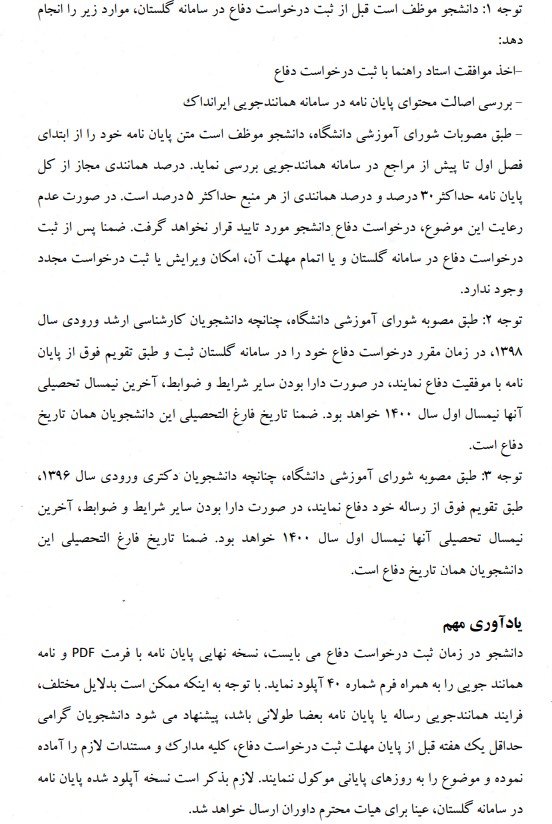 تقویم اموزشی دفاع دانشجویان دوره های ارشد و دکتری 1400