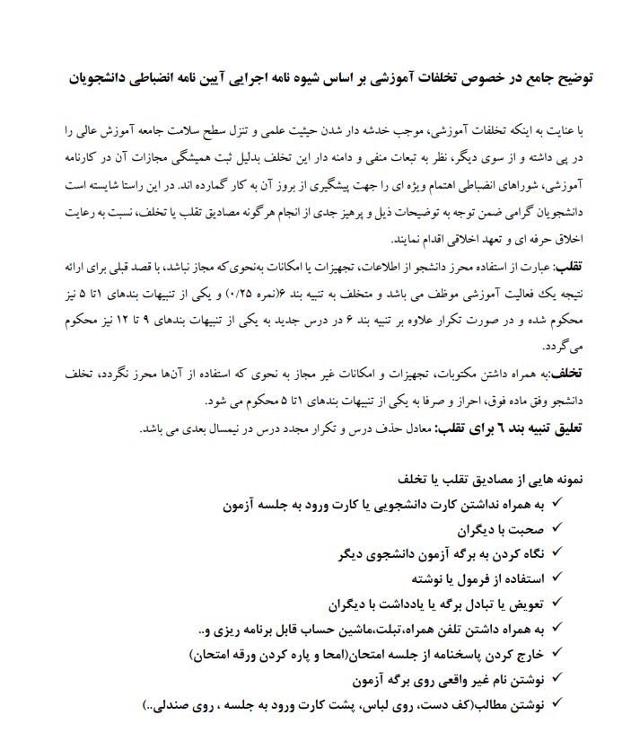 اطلاعیه دبیر خانه شورای انظباطی دانشجویان