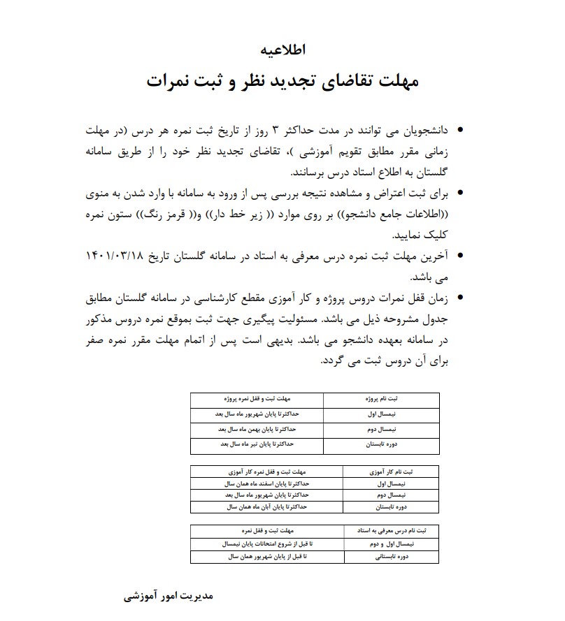 تجدید نظر و ثبت نمرات