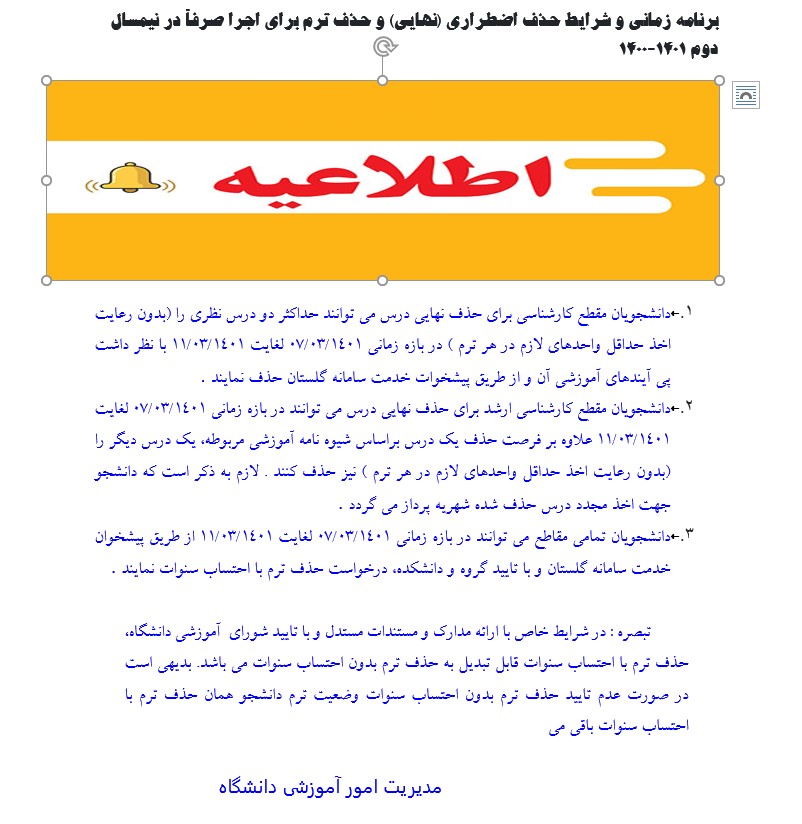اطلاعیه حذف اظطراری و حذف ترم