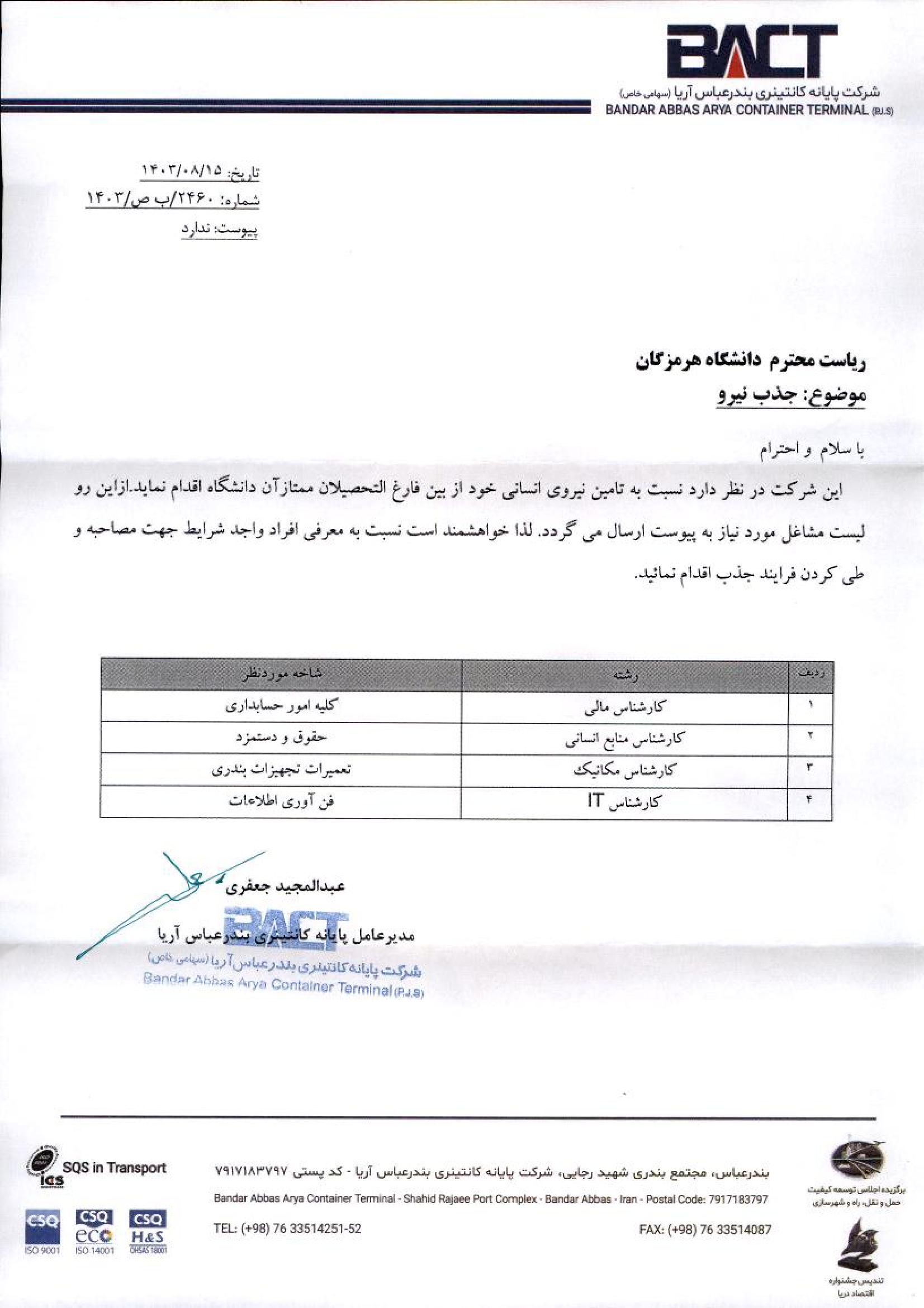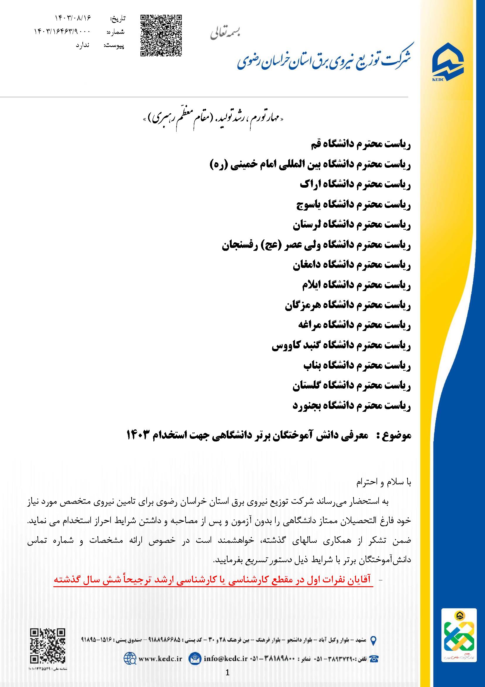 جذب نیرو موسسات دولتی و خصوصی از طریق دانشجویان رتبه برتر
