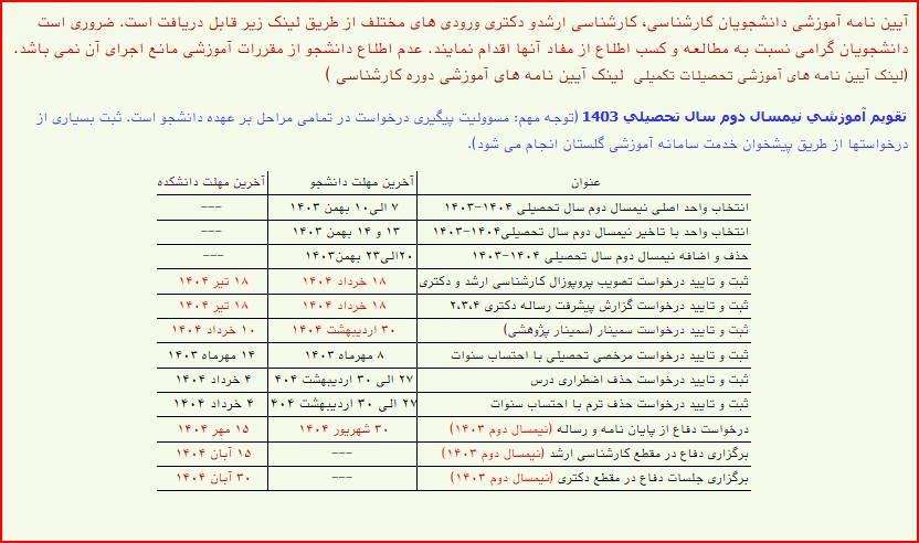 تقویم آموزشی نیمسال دوم 403-402