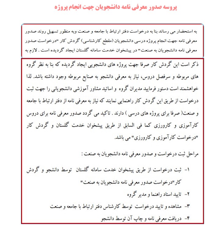پروسه در خواست صدور معرفی نامه جهت انجام پروژه