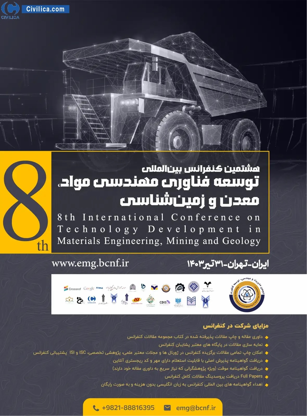 هشتمین کنفرانس بین المللی توسعه فناوری مهندسی مواد، معدن و زمین شناسی، 31 تیر ماه 1403