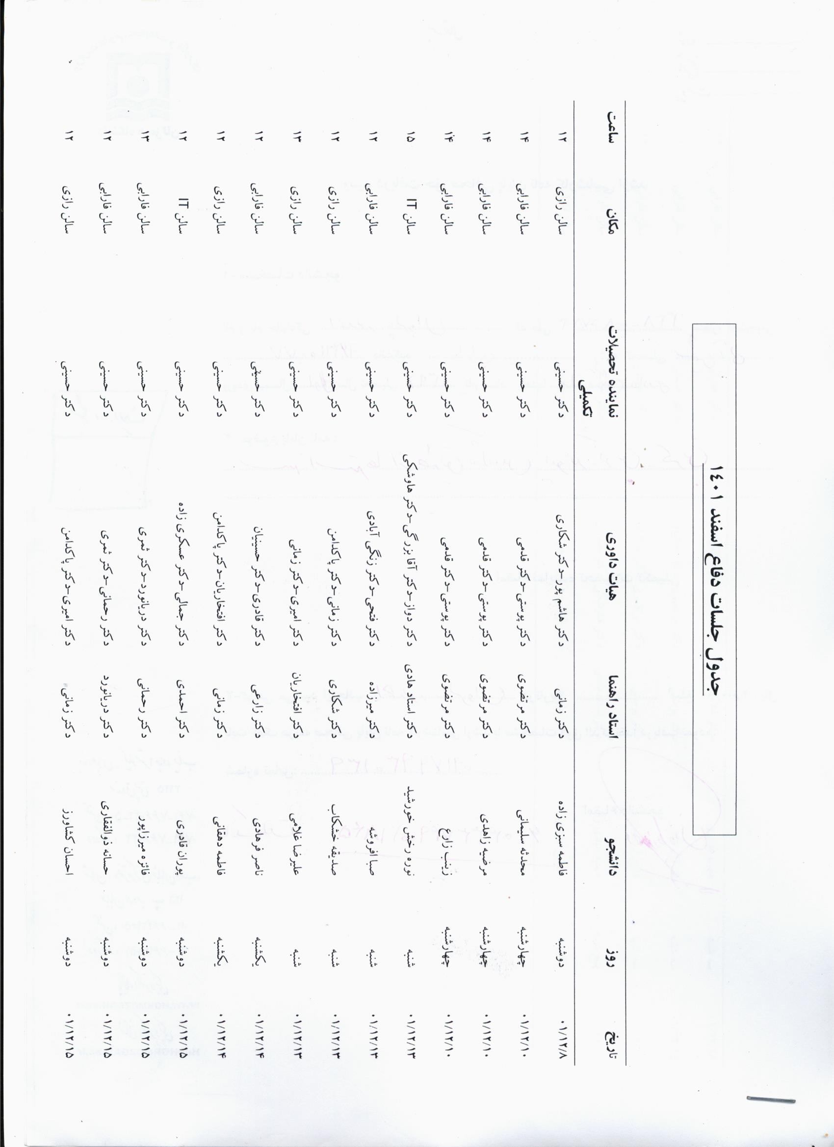 برنامه جلسات دفاع دانشجویان تحصیلات تکمیلی