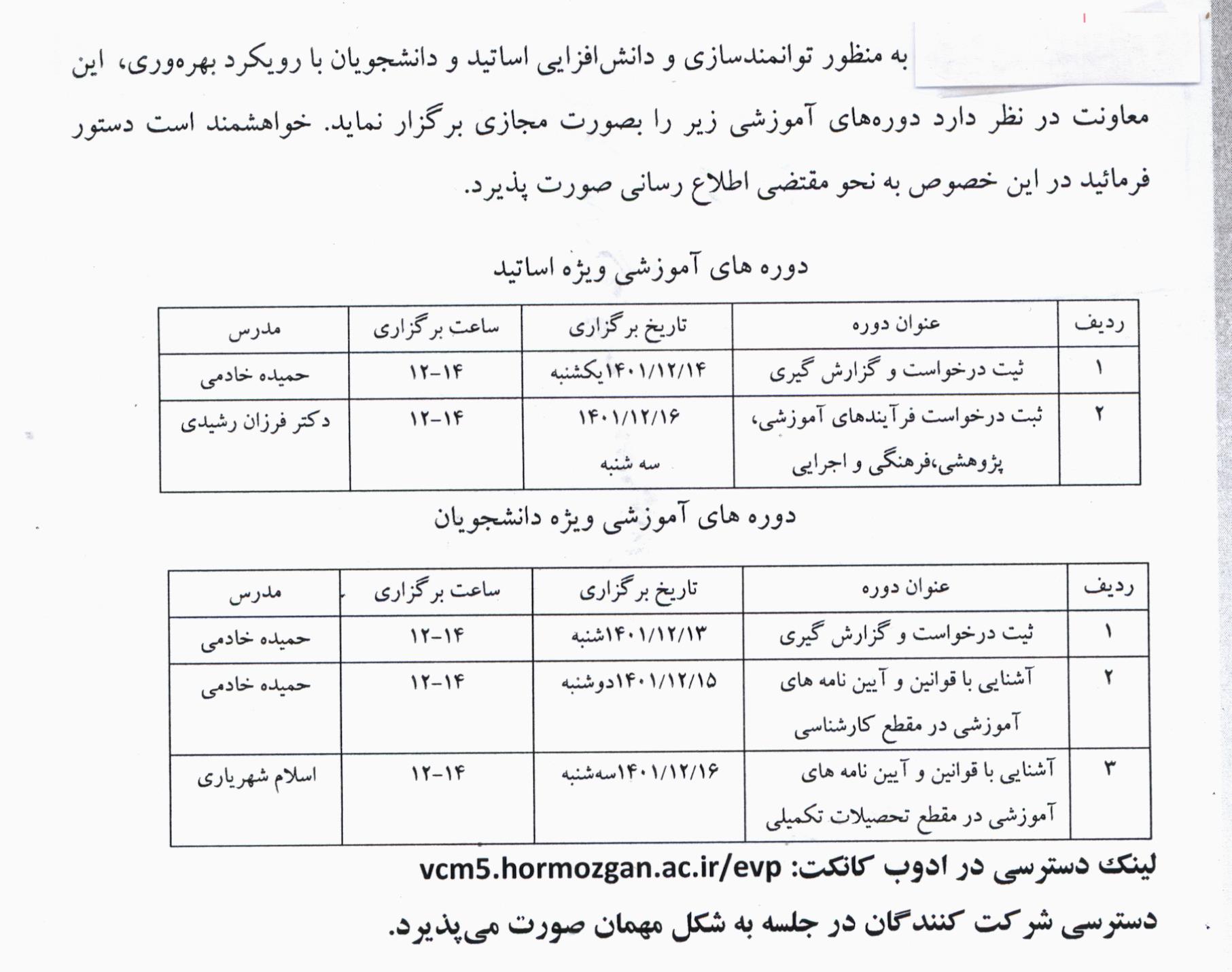 دوره های توانمندسازی برای اساتید و دانشجویان