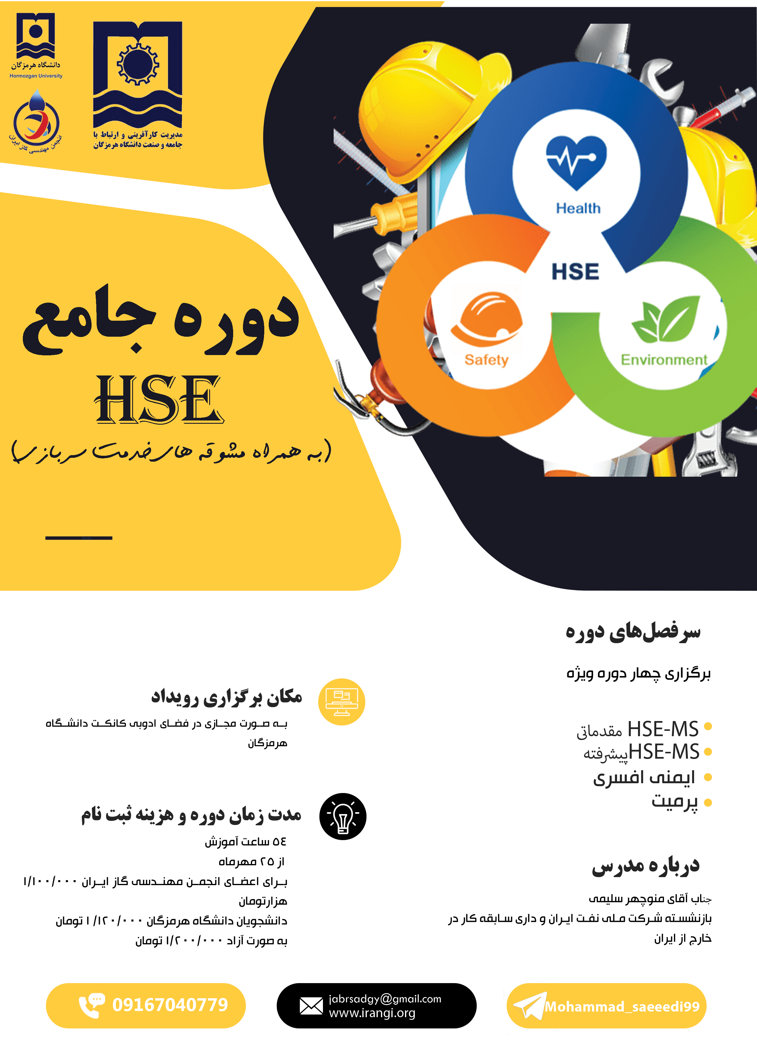 برگزاری کارگاه مهارت افزایی با عنوان دوره مهارت افزایی H S E به همراه مشوق های خدمتی