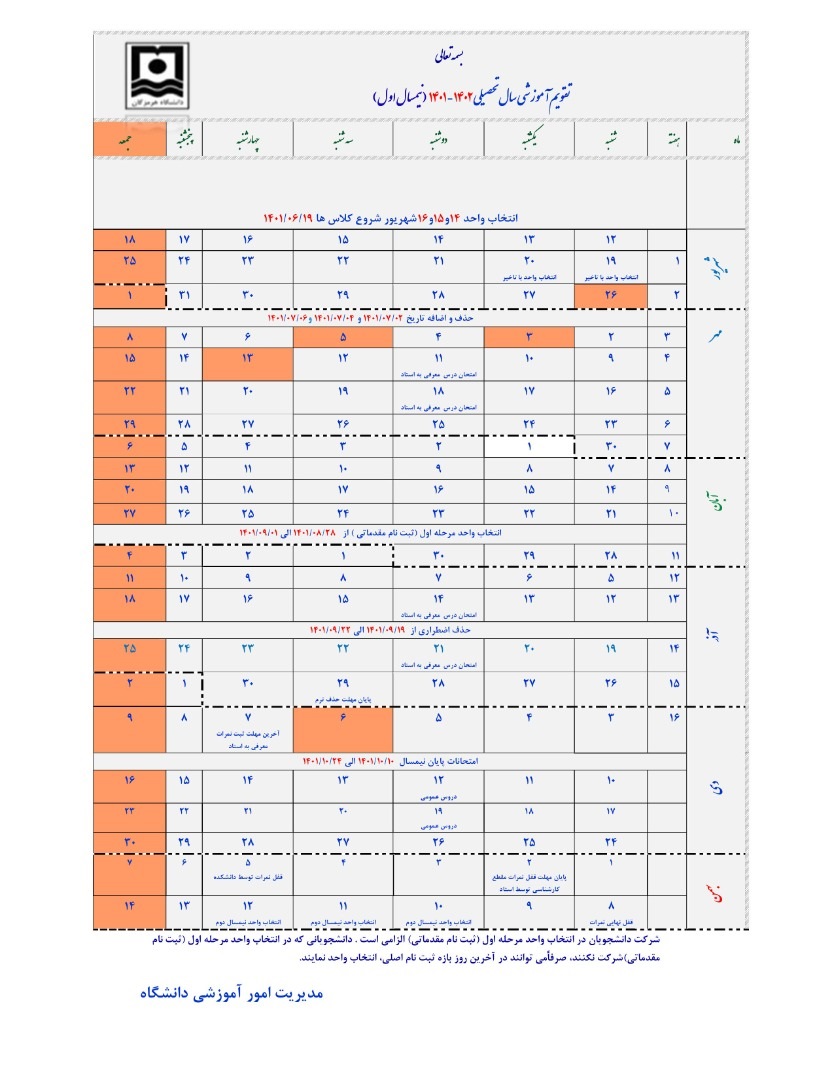 برنامه حرکت سرویس های ایاب و ذهاب دانشجویان دانشگاه هرمزگان