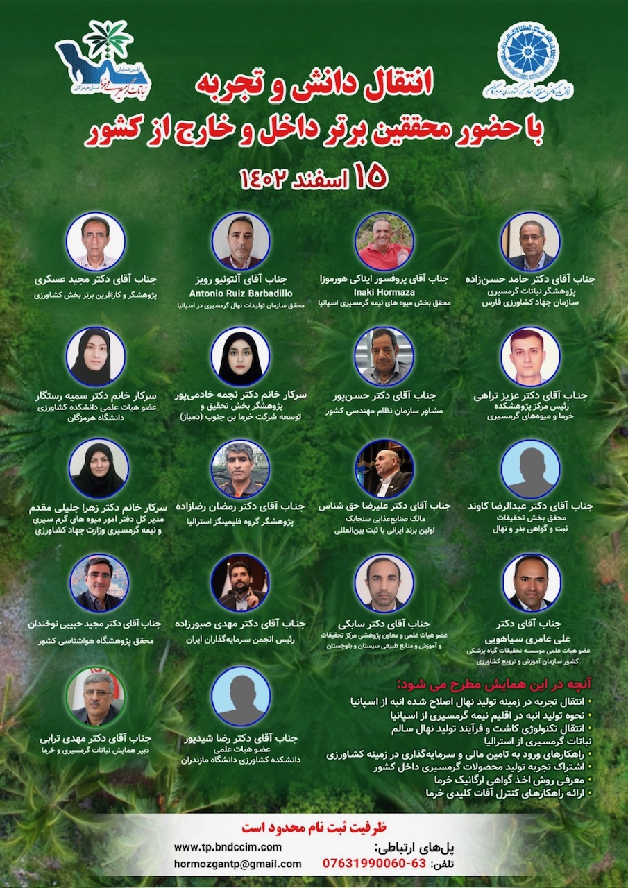 انجمن علمی مهندسی کشاورزی مجتمع آموزش عالی میناب با همکاری انجمن علمی علوم باغبانی دانشگاه هرمزگان برگزار می نماید: