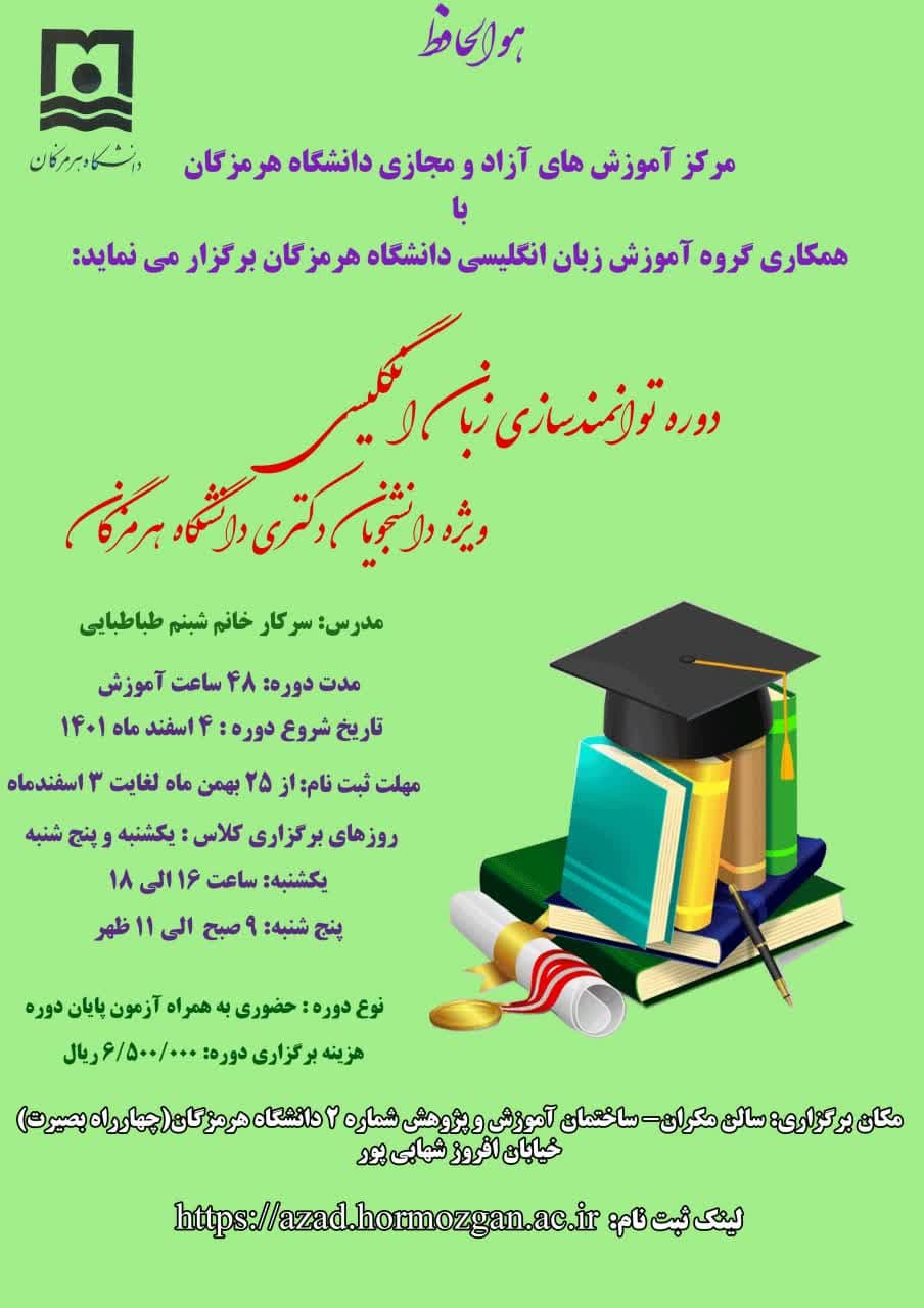 برگزاری دوره زبان انگلیسی ویژه دانشجویان دکتری دانشگاه هرمزگان
