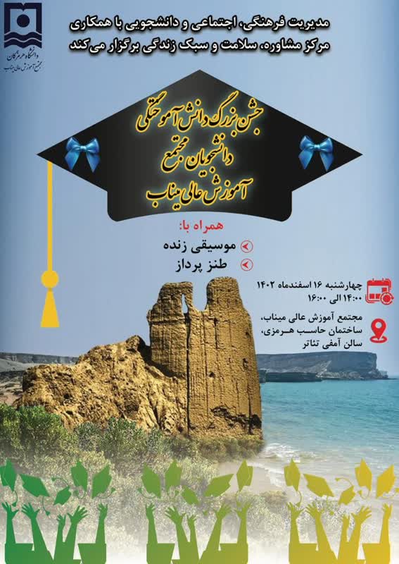 مراسم دانش آموختگی دانشجویان مجتمع آموزش عالی میناب در روز چهارشنبه 16 اسفندماه با حضور اساتید، همیاران علمی، دانشجویان و همچنین خانواده های دانش آموختگان برگزار گردید.